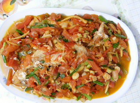 我们要先准备好红杉鱼3条、西红柿3个、姜少许、大蒜少许、葱少许。把红杉鱼切肚洗干净后,放在一边备用,再将西红柿洗净切粒。在锅内放入一定量的食用油,把大蒜和姜片放入略炒香后,再把红杉鱼放锅内煎至微黄,放入西红柿,盖上锅盖焖煮,记得要用中火哦。等到鱼熟了后,再起锅装盆,放入些葱段、盐等调料,这道菜就完成了。