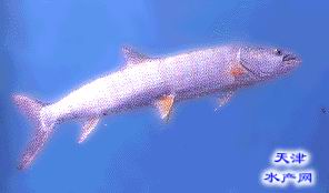 [形态特征]大型凶猛性鱼类。体长,其形如梭。头锥形。吻尖长,口端位,口裂大,吻长远超过吻宽。下咽齿扁形,尖端勾状,3行。下颌前顶端有一尖硬的骨质突起,与上颌前端的凹陷相嵌合。眼小。鳃耙稀疏。无须。腹部回。鳞小。侧线鳞100以上。背鳍起点在腹鳍之后,胸鳍不达腹鳍,腹鳍不达臀鳍,尾鳍深叉形。体色微黄,腹银白,背鳍、尾鳍青灰色,其余各鳍黄色。