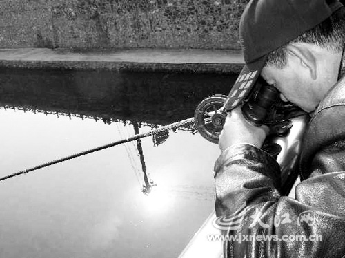 3日,在萍乡市北桥桥廊上,几位市民正戴着望远镜垂钓。一位姓董的先生告诉记者,经过近几年的整治,萍水河的水清了,如果戴上望远镜,鱼儿吃食也能看得清清楚楚。记者李桂明摄