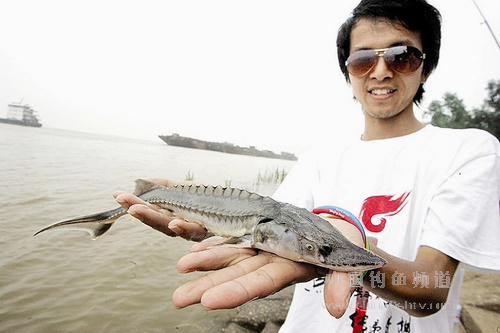 钓友在江中钓起中华鲟,25号中午,钓友石先生报料,他在青山建一路长江边钓起一条中华鲟。 记者赶到后,石先生小心地从水中的网兜里托起一条长30多厘米的鱼,尖头长吻,身体呈纺锤形,体表有5行大而硬的骨鳞。因记者曾在以前的采访中接触过中华鲟,再经过上网进一步比对,确认这是一条野生小中华鲟。 采访后,石先生将其放归江中。