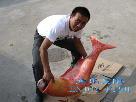 内的仙女湖里撒网捕鱼时,意外的打捞上来一条重达30多公斤的红色大鱼,体长120厘米。经过了