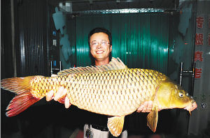 记者来到张先生家,看到了那条金色“鲤鱼王”,量了下,身长80厘米、体重达10公斤。这条大鲤鱼通体金黄,尾鳍呈暗红色,单个鳞片的面积比一元硬币还要大很多。张先生回忆起跟记者说:“我是在19日凌晨4时就出发来到牟平区水道镇垂钓,但是经过了5个小时还没有见鱼上钩,再过了10多钟后,突然感觉到手里的鱼竿一沉,浮飘也钻进水里,根据经验,他判断是大鱼上钓,便稳住鱼竿扯着鱼线在水库边上溜鱼。跟大鱼博斗了10多分钟后,大鱼也疲惫了,我才和朋友一起下水把它给抱了上岸。当时别提有多高兴了,我都钓了五年多的鱼了,还是第一次钓上这么大的鲤鱼。