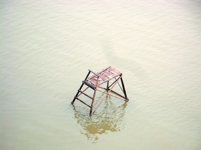 江上垂钓架如果被水淹没,将会威胁行船。谢春年摄
