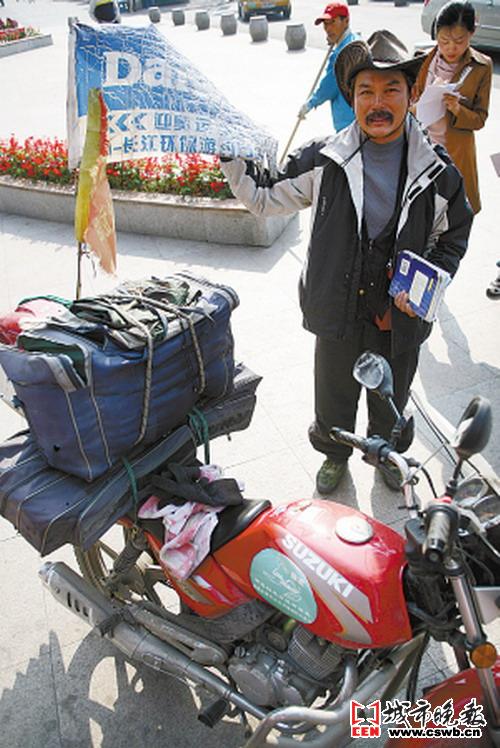 迎奥运、心系长江黄河,延边作家李根浩骑摩托车穿越了23个省(市、区),进行他的第5次环保游钓活动