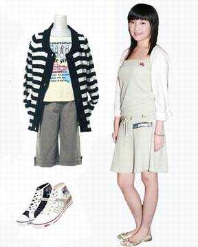 风格点评:一件小碎花褶皱衬衣,梳上微微卷发,一个甜美的芭比娃娃打造出炉。在衣料的选择上,棉质的卡通T恤同样推荐,身材娇小的MM适宜搭配短裙来提升娇俏的感觉。