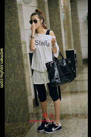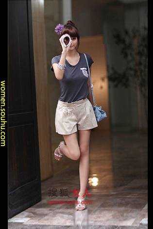 解析:膝上20-30公分是腿部最容易长的漂亮的地方,搭配肥肥大大的卡其色短裤遮盖了大腿的赘肉,露出最纤细的一部分。