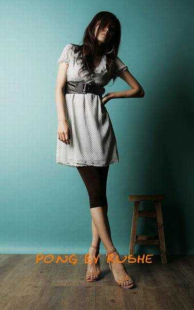 紧身裤与连衣裙式上装完美碰撞,而宽腰带的加入在视觉上有明显的拉长感