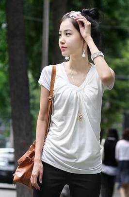 点评:白色基本款Tee选择的重点就是,一定要选择质地上乘的棉质面料,不会水洗变形,更能穿出质感。