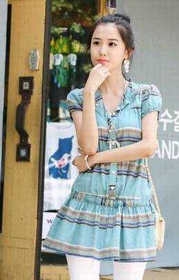 点评:浅蓝色泡泡袖娃娃装,宽松的款式有助于通风透气哦,凉爽度加分。