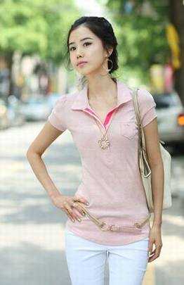 点评:粉色公主袖polo领T恤,色彩好像夏日里的冰淇淋。