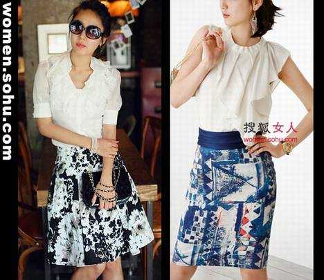 搭配Tips:花朵、波普图案的加入,令你的下半身过于抢眼,繁复的图案更适合搭配简洁的剪裁,复杂的款式让你看起来充满累赘感。上装的选择方面,也应尽量选择色彩干净简洁,优雅大方的款式进行搭配。