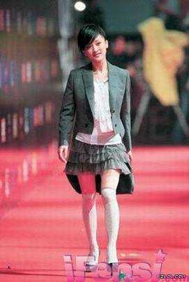 的衣着形象实在不敢恭维,日常装扮多以甜美形象示人,小礼服是其必备,难得见她这身中性装扮,差点把编者眼镜给吓掉!西服短裤面料显得很廉价。。。高领毛衣雷死人不偿命。袜子也够破的。