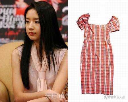 时尚点评:淡灰色的务袖衫搭上红色千鸟格的超短裙,让你在低调中展现性感小女士的一面。