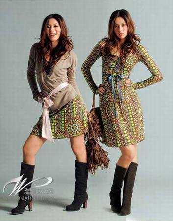 驼色束腰长袖/PINKO,图案/MISS SIXTY,深咖啡色长靴/热风