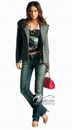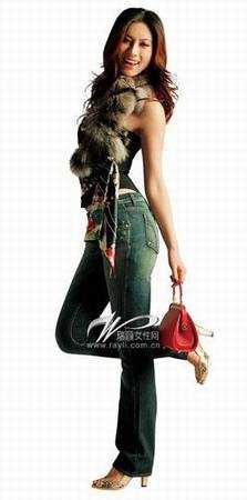 皮草围巾/私人物品,牛仔裤/MISS SIXTY,金色高跟凉鞋/玛丽露,黑色花朵图案抹胸/MORGAN