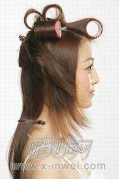 1.头顶部使用四个发卷。