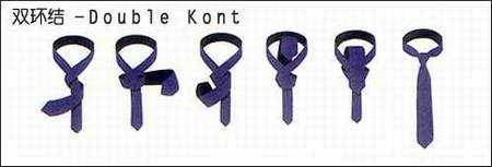 一条质地细致的领带再搭配上双环结颇能营造时尚感,适合年轻的上班族选用。该领结完成的特色就是第一圈会稍露出于第二圈之外,可别刻意给盖住了。