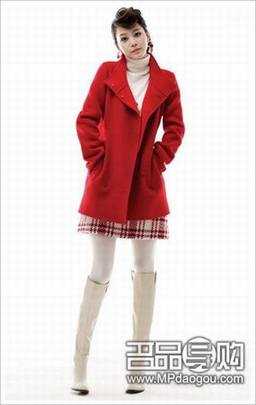 红色在冬天能个人暖暖的感觉,还很喜气,与米白色的打底衫,黑色、棕色裤子搭配比较低调;如果想出彩一些,可以配深棕色或黑色的裤子和正紫色的打底衫。可以选择7分袖的抽绉与喇叭型设计,浪漫可爱。胸下拼接的A字型线条与背部的蝴蝶结等,女士味十足!
