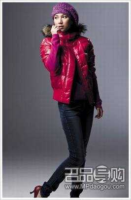 A:色漆皮羽绒服可搭配紫色、绿色、黄色裤子,帽子围巾可用同色系搭配。