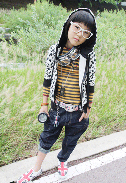韩式服装最吸引人的地方还在于它所运用的夸张手法,它满足了都市里忙忙碌碌的人们渴望宣泄的心情。个性的张扬就是快乐的源泉:宽就宽到极至的阔腿裤,瘦便瘦到极至的紧身衣。你可以妩媚到极至:纯白色紧身背心,嫩粉色的绣花长裤,一举手,一凝眸,都散发无尽的女性魅力;你也可以神秘到极至:黑色无带背心配黑色的阔腿长裤,本色的鱼网长裙,一个令人目光追寻的神秘女郎。