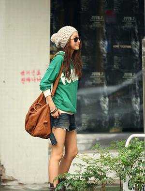 搭配风格:帽衫搭边缘毛躁躁的小热裤硬朗帅气又不失性感,柔软的大包与整体风格很搭。