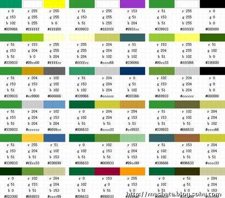 绿色系的配色方案如下,