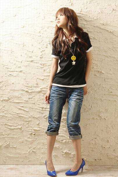 在所有颜色中,蓝色服装最容易与其他颜色搭配。不管是近似于黑色的蓝色,还是深蓝色,都比较容易搭配,而且,蓝色具有紧缩身材的效果,极富魅力。