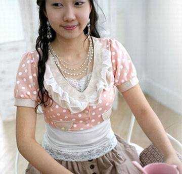 4.白色褶折裙配淡粉红色毛衣,给人以温柔飘逸的感觉。
