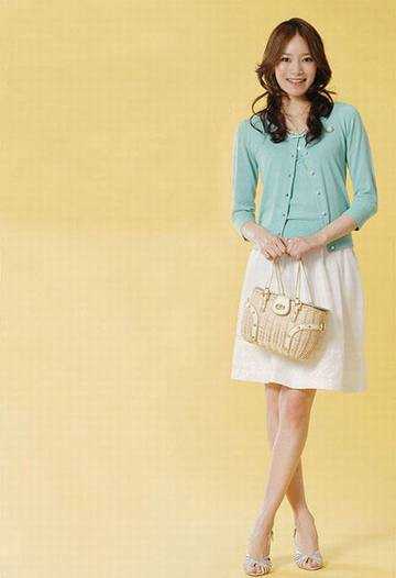 不是每个人穿绿色都能穿得好看的,绿色和嫩黄的搭配,给人一种很春天的感觉 ,整体感觉非常素雅,静止~~淑女味道不经意间流露出来