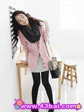 实用的淑女派Ol混搭。同为长款式的浅灰色长T与浅粉色针织开衫联手为黑色下装打上了柔美的烙印。H型长款的“收缩体积”效果绝对会让人惊喜。如果你想更优雅,换上双浅灰色及踝靴不妨一试。
