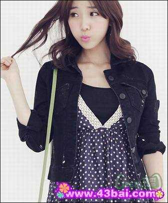 很帅气的叠穿法,只是这种搭配的牛仔衣一定要选合身小巧的款式。(搭配)