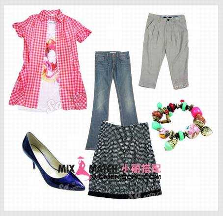 搭配支招:收腰的印花T恤搭配喇叭裤,突出了腰部的曲线,喇叭裤有效地遮盖住了腿部的肥胖,轻松带出S型曲线。今年大热的波点元素衬衫搭配一条直筒裤,既能展现今年时尚元素,又能最大限度地展现女士婀娜身姿,腰间再系上一条腰带,凸显了优美的曲线。