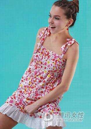 时尚衣服搭配点评:不但舒适而且非常俏皮可爱的一款,各种可爱元素云集一身,亮丽小花朵、系成蝴蝶结的肩带、松紧裹胸