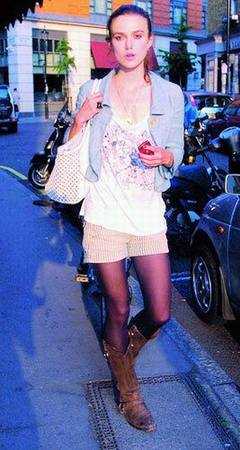 白色陷阱:看上去好似一种类型的装扮,却显得臃肿了很多,因为本身胯骨过宽,白色吊带堆积在大腿上,当然显胖,看来还是要有小女士似的娇小身材才好啊。