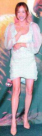 修长的身材让她在显膨胀感的白色中依然苗条,拥有让人羡慕的美腿自然要展示,收腰的腰带让整体造型更利落。