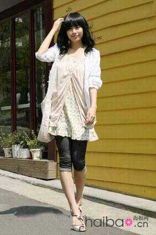 另外,上衣应选择尖型领口和长过臀部的款式,下身则以直裤为最佳选择。