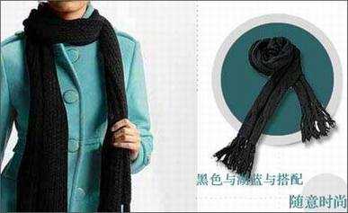搭配五 黑色与湖蓝搭配 黑色的针织围巾绝对是百搭。一贯给人稳重,沉闷的感觉,所以在与服装的搭配中,应该选用色彩鲜艳的服装为主。
