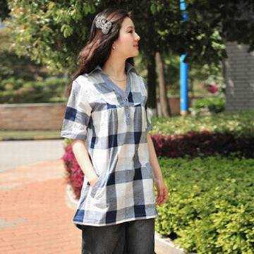 英伦格子衬衫,童话般的宽松娃娃衫,透气的棉麻质地,甜美可人。
