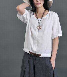简约百搭,短款短袖衬衫,棉麻质地很有质感,宽松不建议瘦小的美眉穿哦。