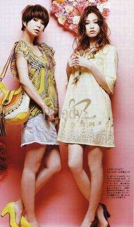 春天服饰搭配点评:今年春天大热的dot柄和格子look,都是可爱少女的必备元素,粉红色的dot柄短裙充满了少女的浪漫气息,可爱的蝴蝶结可帮了不少忙的哦;黑白配的面包格短裙让可爱的味道不经意之间流露,公主袖与裙摆的细节位置可不能缺少的。同样的褶边设计让甜美包围在两人的身边,谁还能对这样的姐妹花不回头呢?