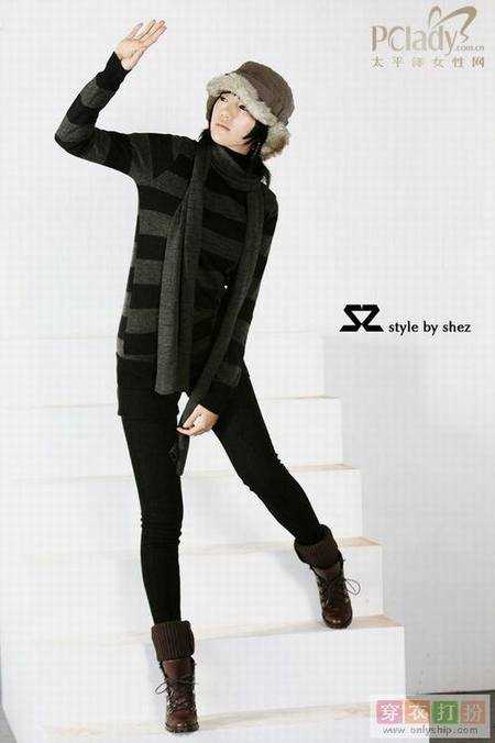 深沉的条纹花纹,因为不是纯色调,可作为混搭之用。但一定要配上围巾或是大大的项链,否则就太单调了。