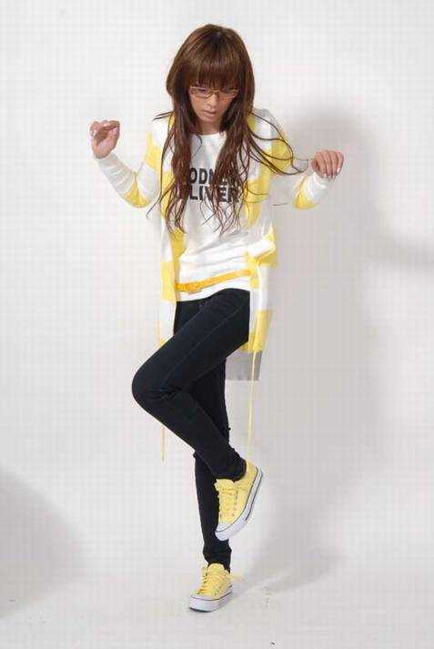 明黄色是本季最热的色彩,最保险的搭配莫过与明黄与黑色的搭配!两种色彩放在一块非常抢眼!不过有一点要注意的是,不要轻易尝试黄黑宽条纹的衣服,那会让你看起来像一直小蜜蜂的。而比较聪明的明黄色搭配方法则是黄+白+绿色!这样的顏色搭配,能让你看起来充满了春天的朝气!