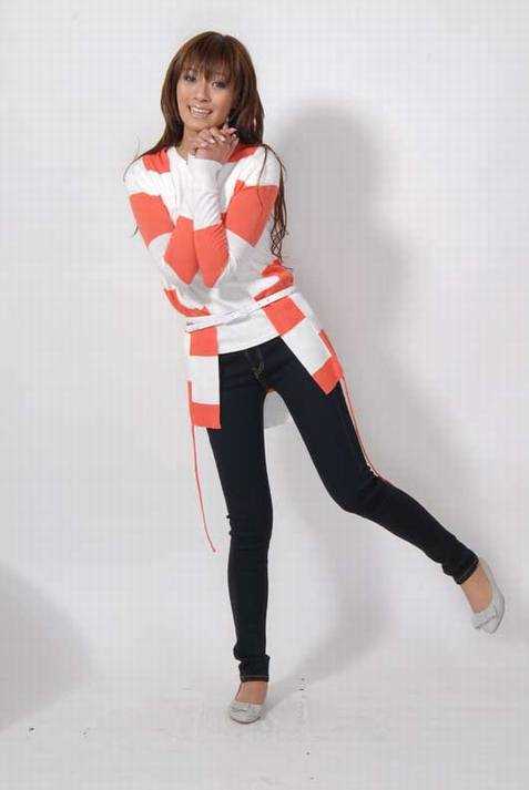 条纹衫是衣橱里经典的款式,必须拥有。而在顏色搭配上,我们建议你通身不要超过三种色彩,基本上穿上条纹上装,夏装以黑色为好,鞋子的色彩最好是条纹衫颜色中的一种,这样看起来能协调而美丽。