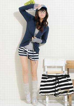 春天服装小短裤点评:休闲风格的运动短裤,真正是热情洋溢~最让人喜欢的是它充满野性感的斑马图案,还有腰间的抽带设计,搭配泡泡袜真是可爱极了!