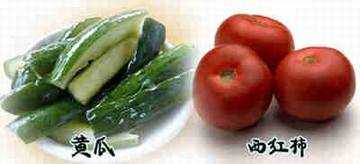 西红柿中含有丰富的维生素C,而黄瓜中的分解酶会破坏维生素C,若二者同食,不利于对维生素C的吸收。