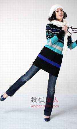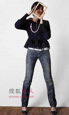 时尚解析:微喇仔裤淑女味十足适合搭配长衫穿着,此类型牛仔裤尽量选择长一点,最好能盖住脚踝,高跟鞋的加入让双腿更显纤细。