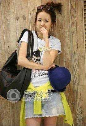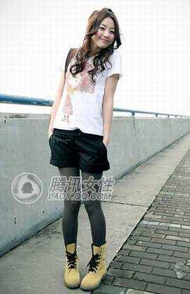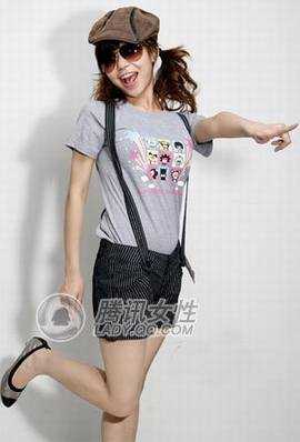夏天服饰搭配方案:卡通小女生图案休闲tee+黑色宽肩服饰搭配短裤