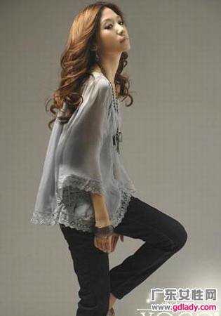 点评:各位MM还可以尝试一下转移视线的办法,选择简单的上衣搭配略带夸张的荷叶边造型领口的外套,荷叶边的外套具有抢眼的视觉效果,让视线停留在上半身,自然就不会轻易留意到你的腰部了。