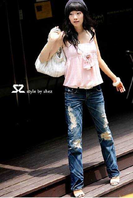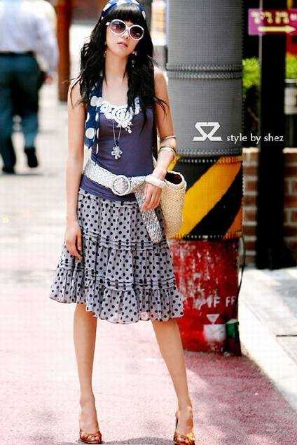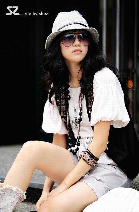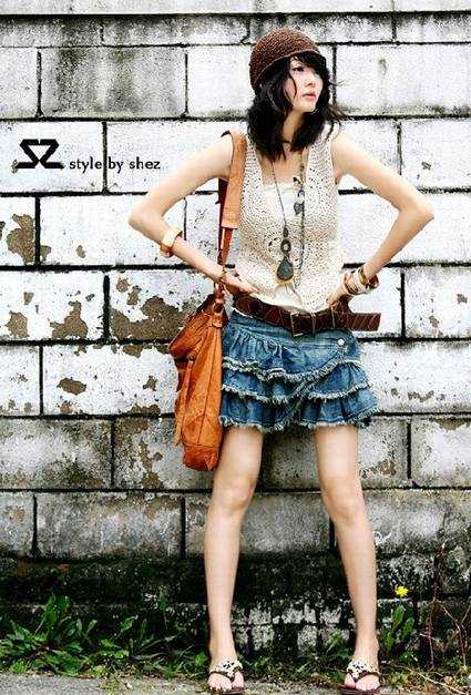 超短牛仔群,搭配短衫,再配上一双休闲的皮拖.非常可爱俏皮的形象