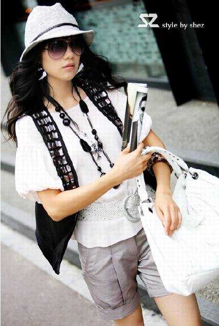 公主内衫搭配小马甲,短裤,带上一条时装链加以修饰,活脱脱一个都市时尚丽人